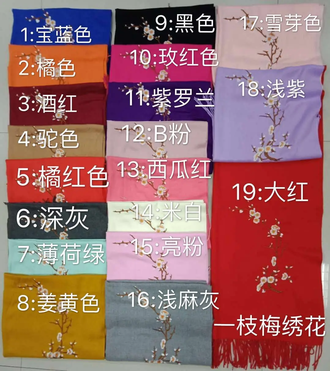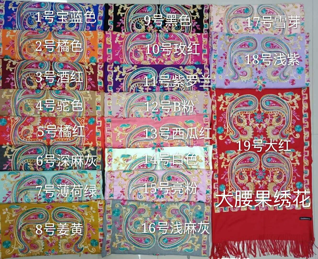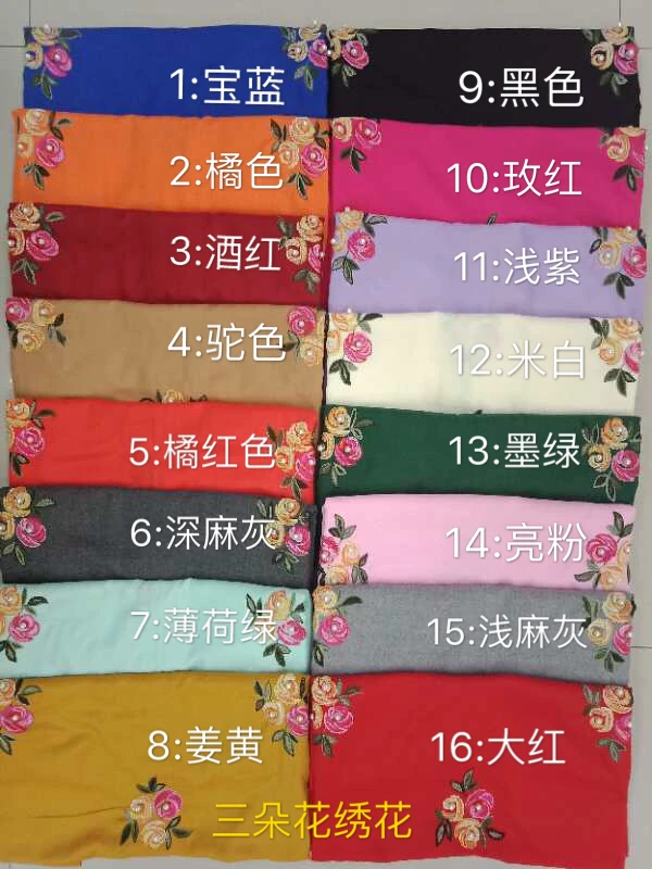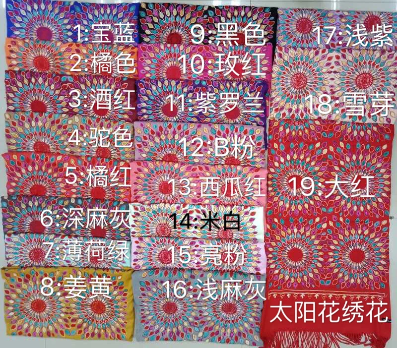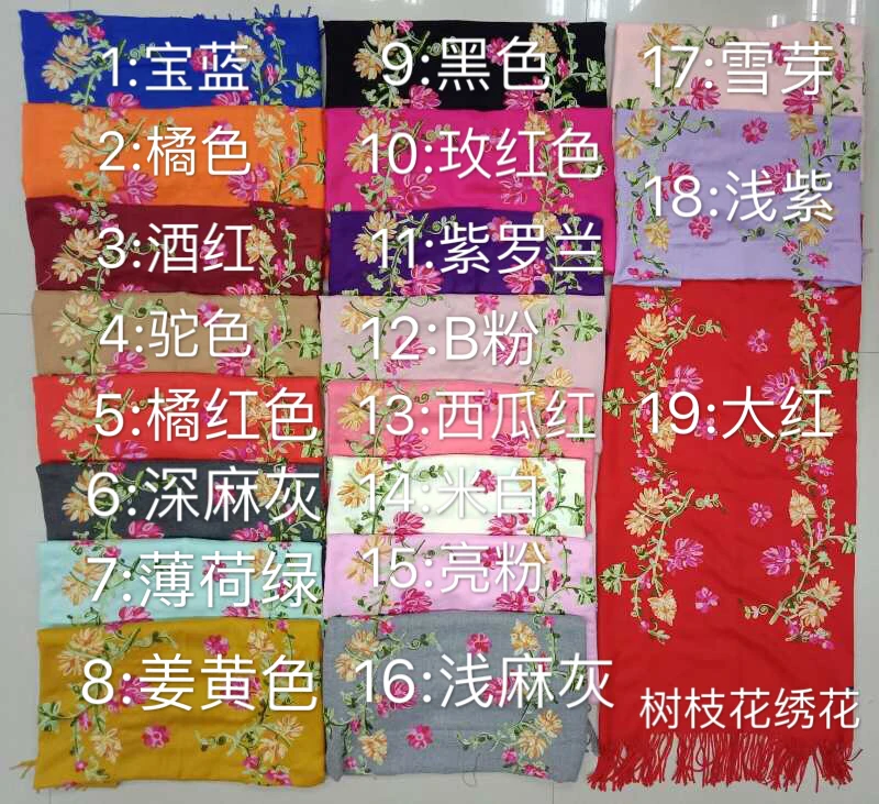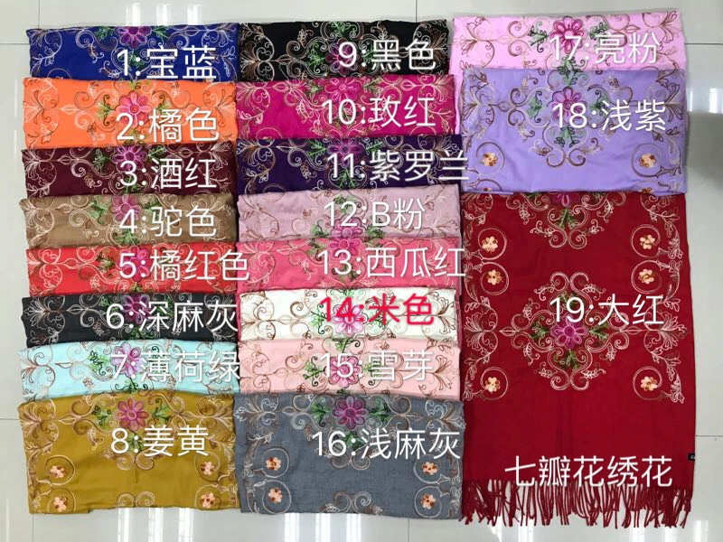 Wholesale Winter Pure Color Cashmere Scarf Women Ethnic Style Handmade Embroidery Scarf Cashmere