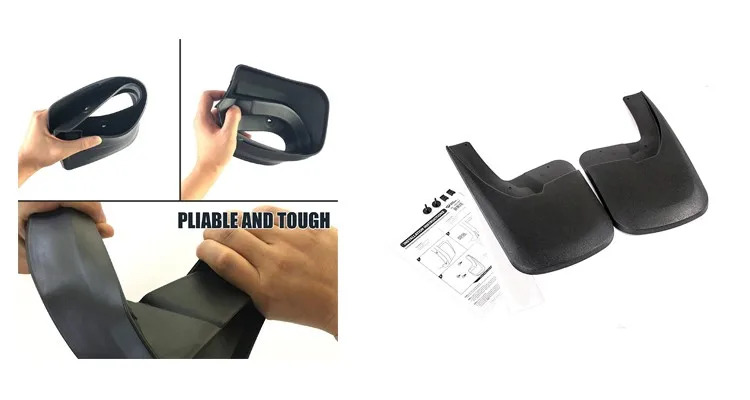 Package includes | 4 mud flaps (2pcs front L/R & 2pcs Rear L/R). 1 bag of screw fixings | ||||||