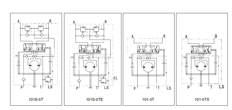 Function code | Displacement (mL/r) | Rated flow (L/min) | Max.input pressure (Mpa) | Max.cont.back pressure (Mpa) | Weight (kg) | Dimension L (mm) | ||||||