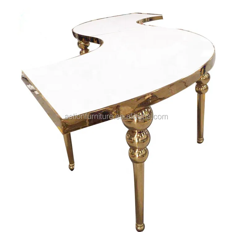 Newest Simple Style White Glass half moon wedding table banquet table