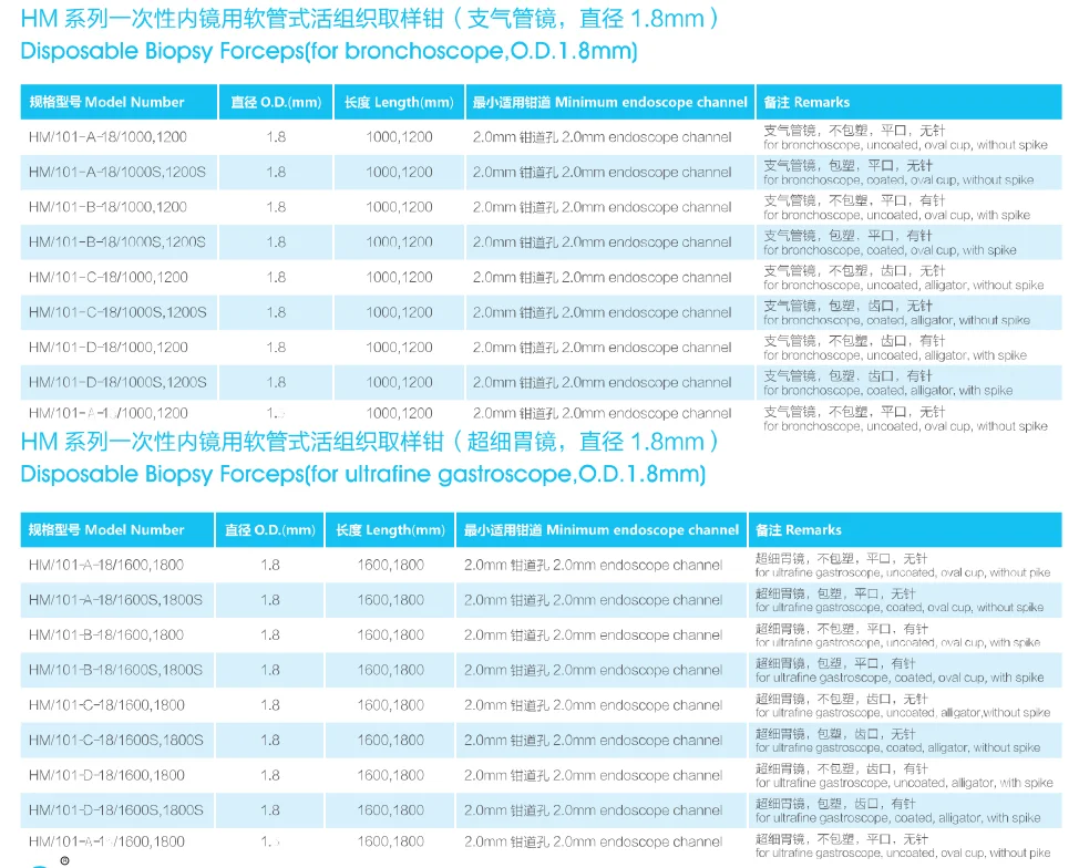 1. The jaw of Disposable Biopsy Forceps is made up of medical-use stainless steel.