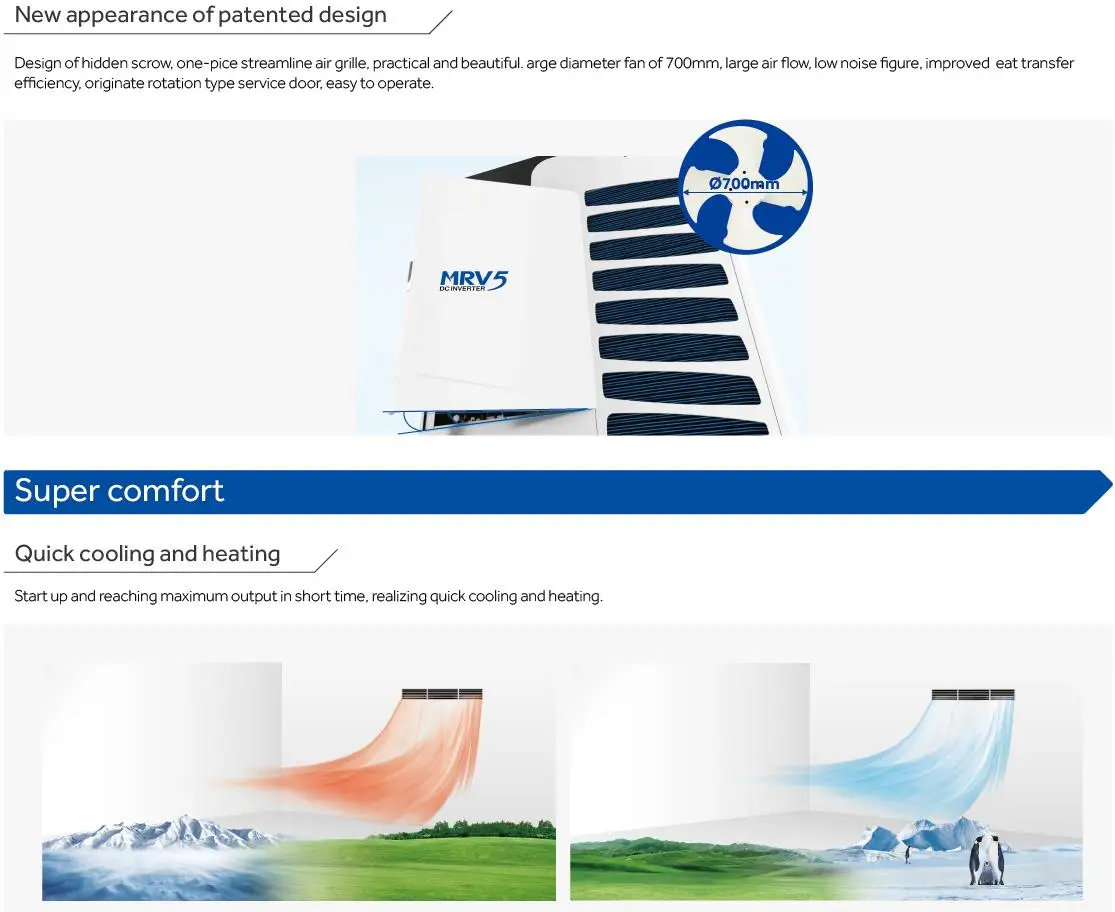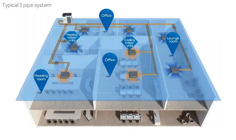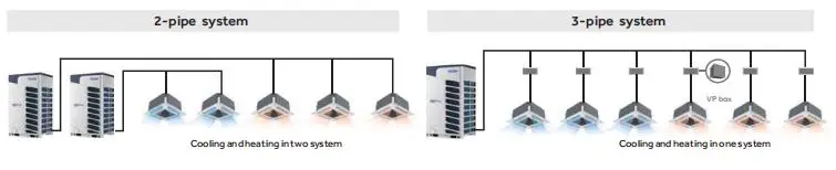 * Cooling and heating simultaneously with only one outdoor unit * Heat recovery system