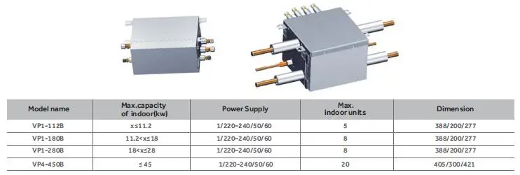 Vp (valve pipe) box structure overview Overview * Specially designed for MRV 5-RC, greatly reduced the volume * Individual Valve + Pipe Box for Heat Recovery * High comfort : Individual control box and change over for one group indoor units * Threaded joint connection, easy for installation
