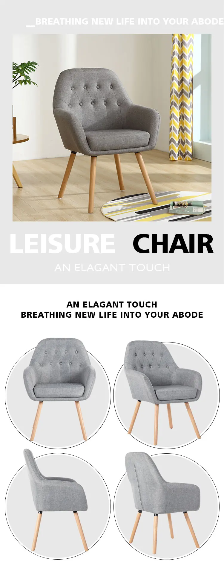 2.curved silhouette 3.tapered rubberwood legs with non-marking foot caps
