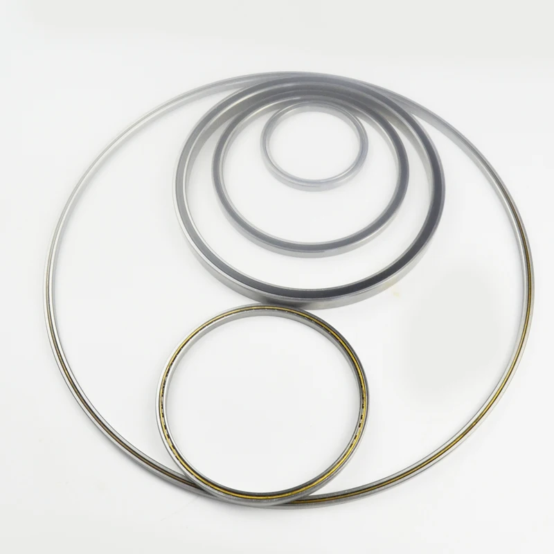 THIN SECTION bearings are a family of bearings designed from a limited number of widths and thicknesses(cross section),with each cross section manufactured in a wide range of bore diameters.an bear radial load and axial load at the same time. Can work at higher speeds. The larger the contact angle, the higher the axial load capacity. High-precision and high-speed bearings usually take 15 ° contact angles. Under axial force, the contact angle will increase.