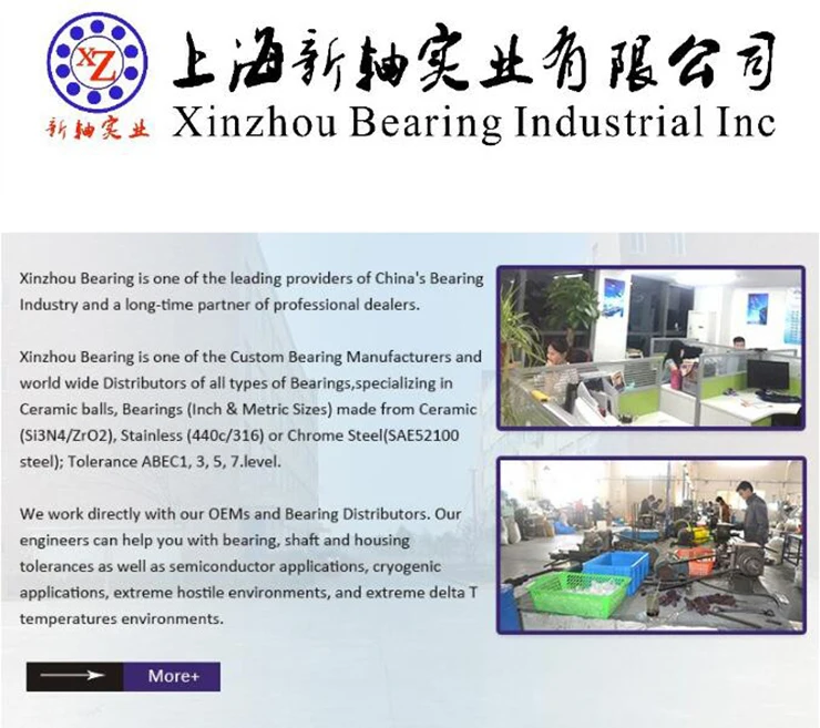 Xinzhou Bearing is one of the leading providers of China's Bearing Industry and a long-time partner of professional dealers.Xinzhou Bearing is one of the Custom Bearing Manufacturers and world wide Distributors of all types of Bearings,specializing in Ceramic balls, Bearings (Inch & Metric Sizes) made from Ceramic (Si3N4/ZrO2), Stainless (440c/316) or Chrome Steel(SAE52100 steel); Tolerance ABEC1, 3, 5, 7.level. We work directly with our OEMs and Bearing Distributors. Our engineers can help you with bearing, shaft and housing tolerances as well as semiconductor applications, cryogenic applications, extreme hostile environments,and extreme delta T temperatures environments. We also stock other manufacturer's bearings. We distribute bearings for extreme high temperature.