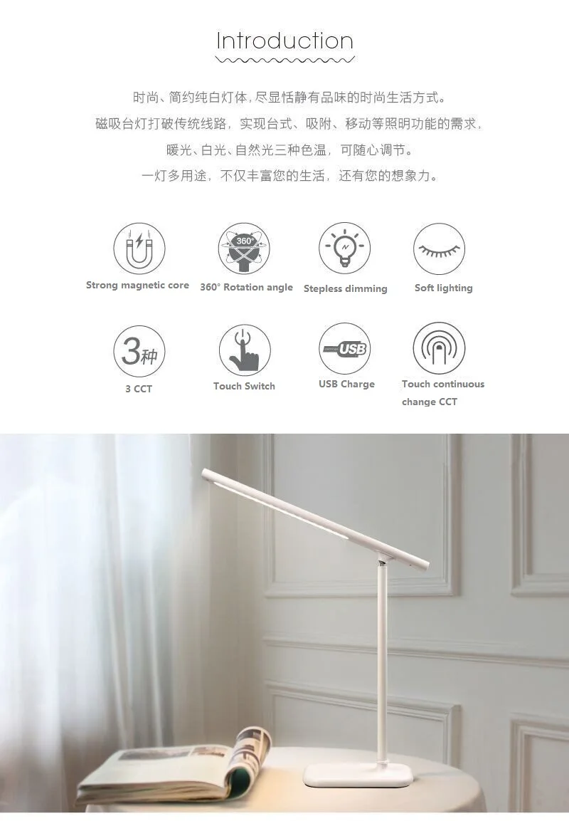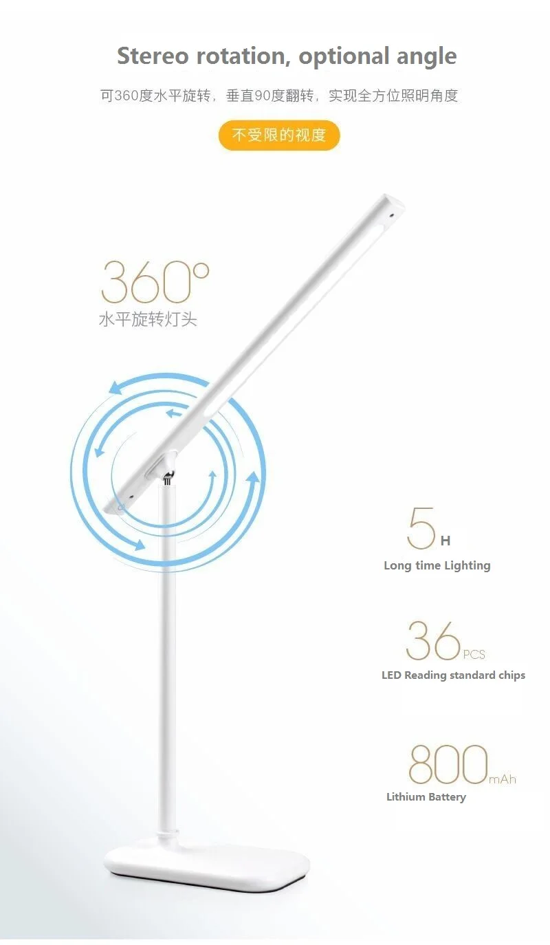 1.Sensitive touch switch,use easily. 2.Use ABS and aluminium material,strong and sturdy. 3.Can fold and rotate. 4.With 5V adapter. 5.More close to nature,more care of your eyes. 6.Non-slip mat.Black non-slip mat on the bottom,non-ship even on the glass table. Multi-function clamp lamp and stand-able lamp.