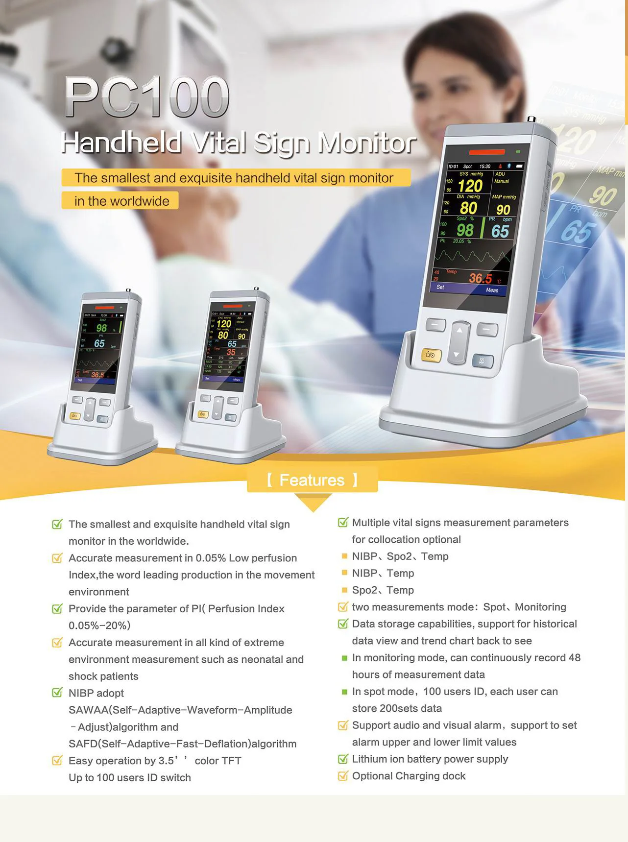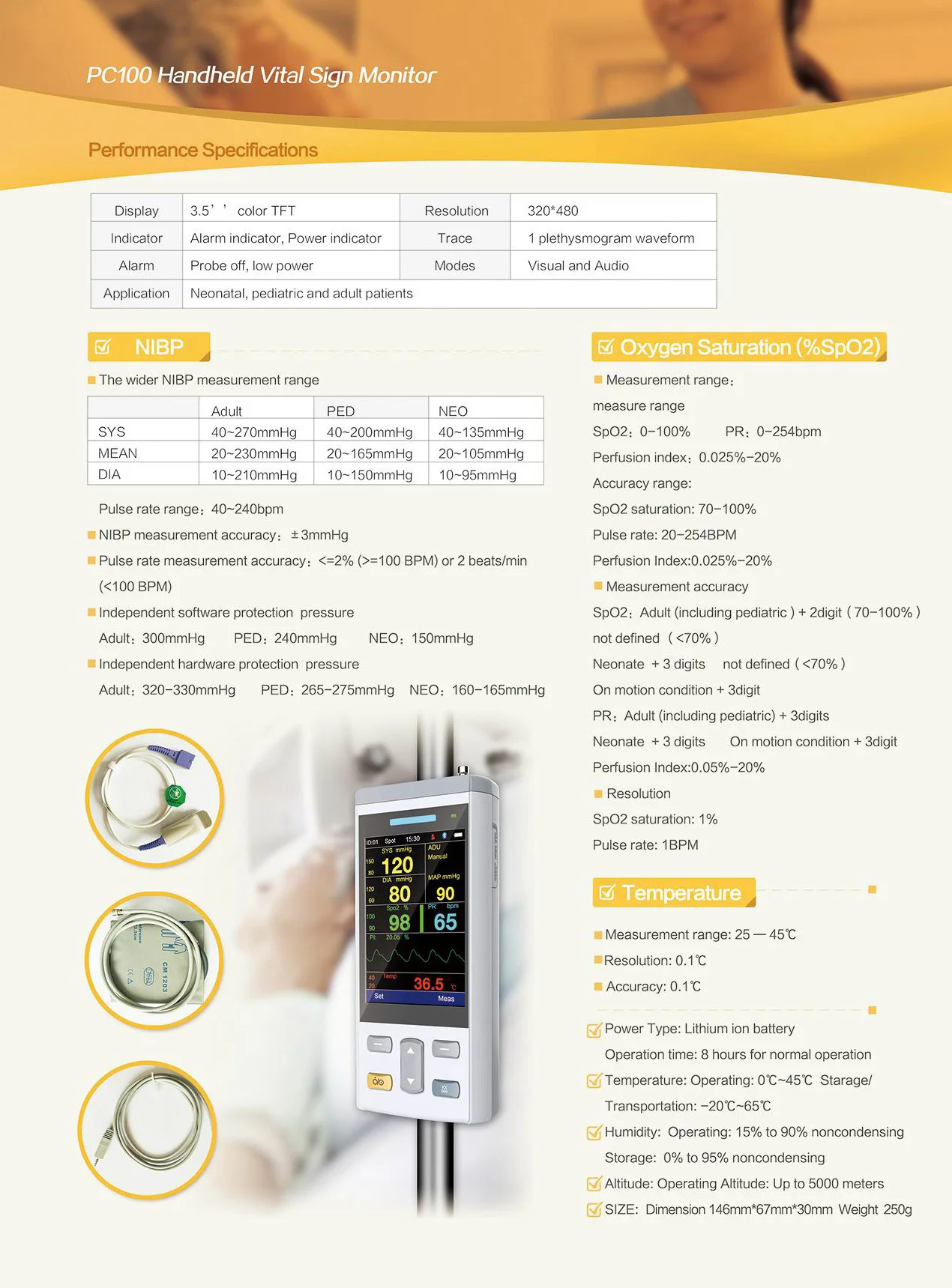 diagnosis,pulse oxygen monitoring,respiration gas monitor, respiratory monitoring,electronic sphygmomanometer etc.Vital sign
