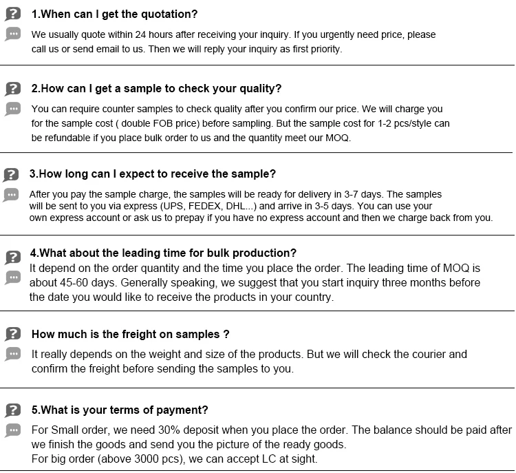 Advantages | 1. Competitive factory price and fast delivery 2. Fashionable design and can be customized 3. Experienced workmanship and advanced quality |