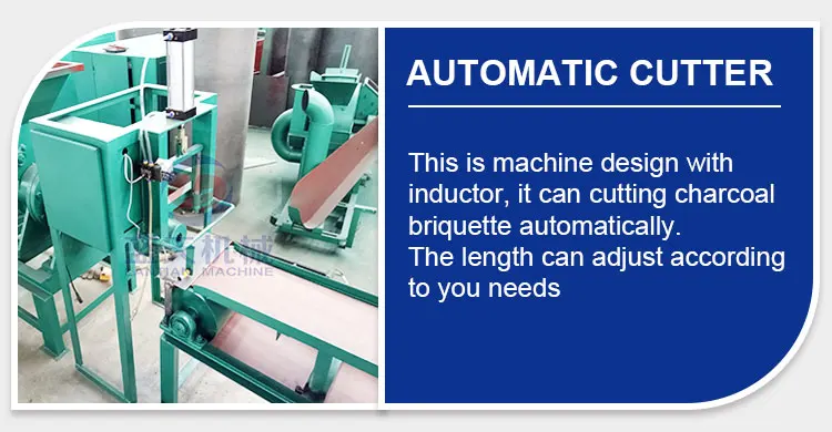 This rice husk briquette barbecue charcoal machine extruder used to make stick shape charcoal and coal briquette from charcoal dust or coal dust. Diameter of the briquette made by the extruder machine from 10 mm to 50 mm, length is adjustable by cutting. This machine can be used for both BBQ charcoal and shisha charcoal. Our extruder machine has many types, they are very popular in the world market as its low cost, exquisite appearance and high efficiency.