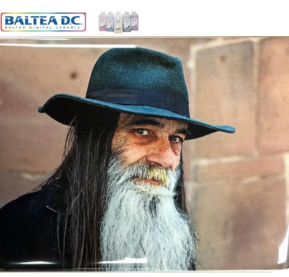 The technology is used for decal printing on ceramics, porcelain, glass and enameled steel. The same printer for different applications.