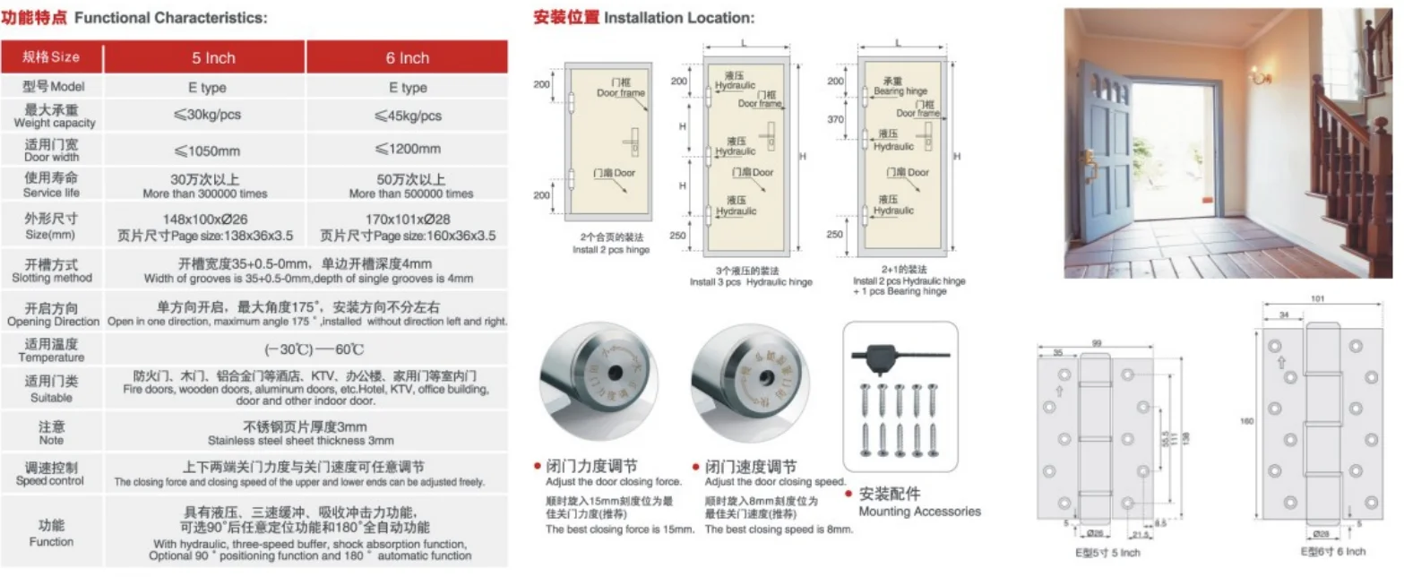 Products Type | E shape Hydraulic door hinge |