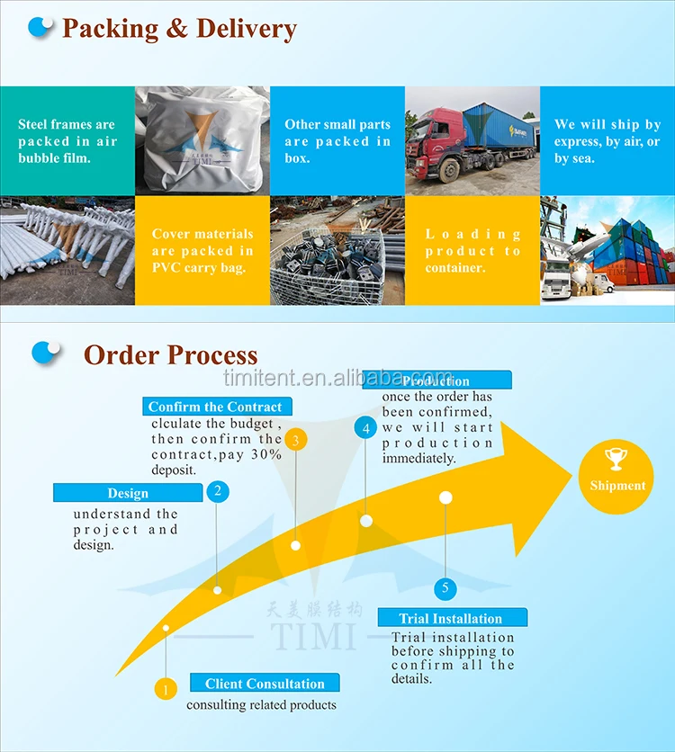 Once the design of tent is confirmed, we will arrange production plan, and inform you of the lead time, generally it takes about 7-25 working days.