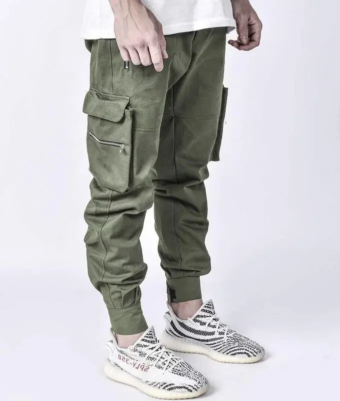 Jogger Men Long High Street Classic Functional Side Patch Pockets Green Cargo Pants Mens
