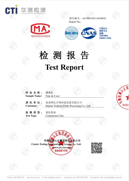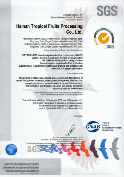 Founded in 2005, our company has a history of more than a decade. The inception of the company, specializing in the processing of nata de coco chip and nata de coco dice. Since 2014, our company changed its name to Hainan Tropical Fruits Processing Co., Ltd, from then on, our company began a new round of development.