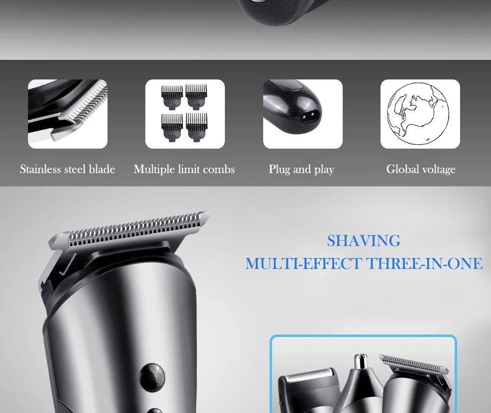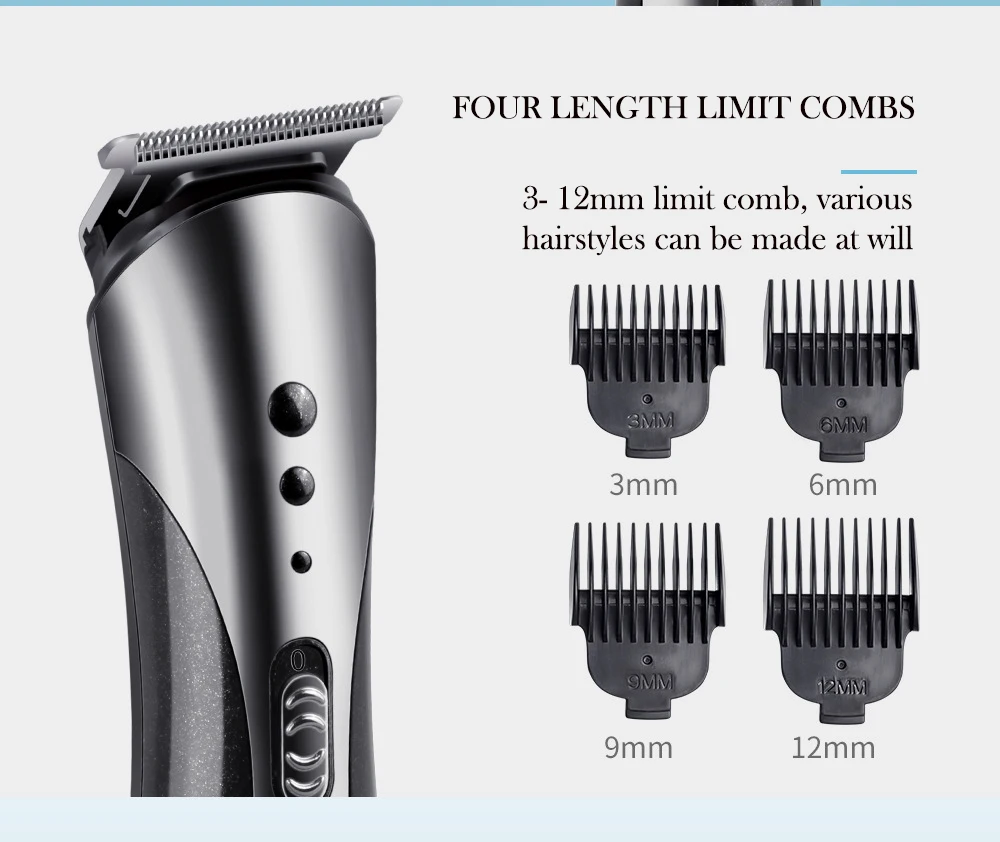 *Accessories | Charging cable plug, cleaning brush, instruction manual, limit comb * 4 (3/6/9 / 12mm), nose hair cutter, shaving cutter | |