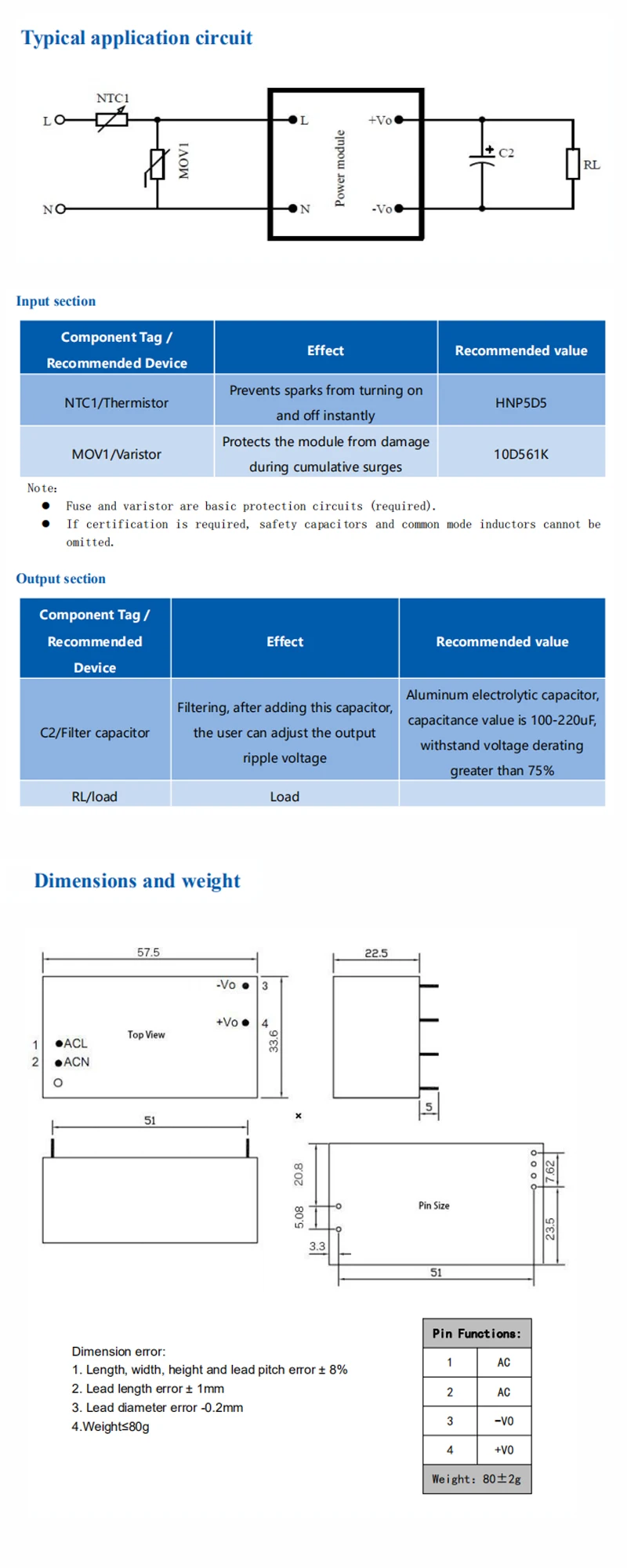 MODEL | Size (mm) | Output watt (W) | Output voltage (V) | Output current (mA) |