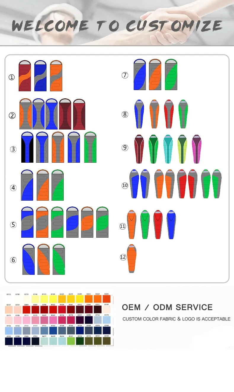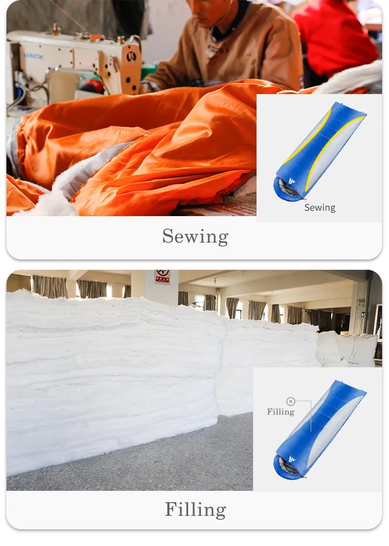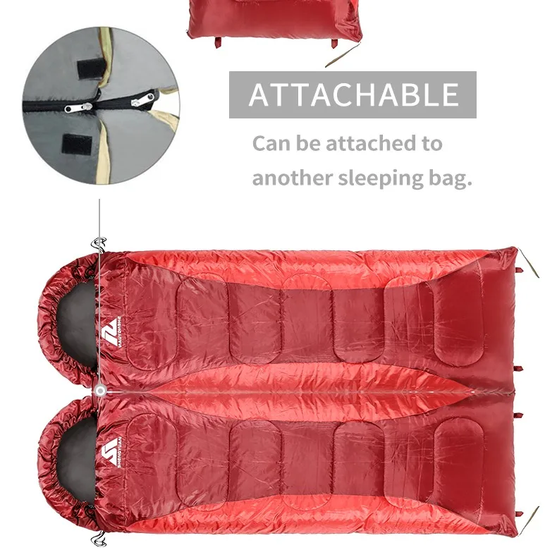 1 | Combining left-zip and right-zip sleeping bag together,You can make a double sleeping bag conveniently.Disconnect the sleeping bag can be used as a quilt or mat. | |