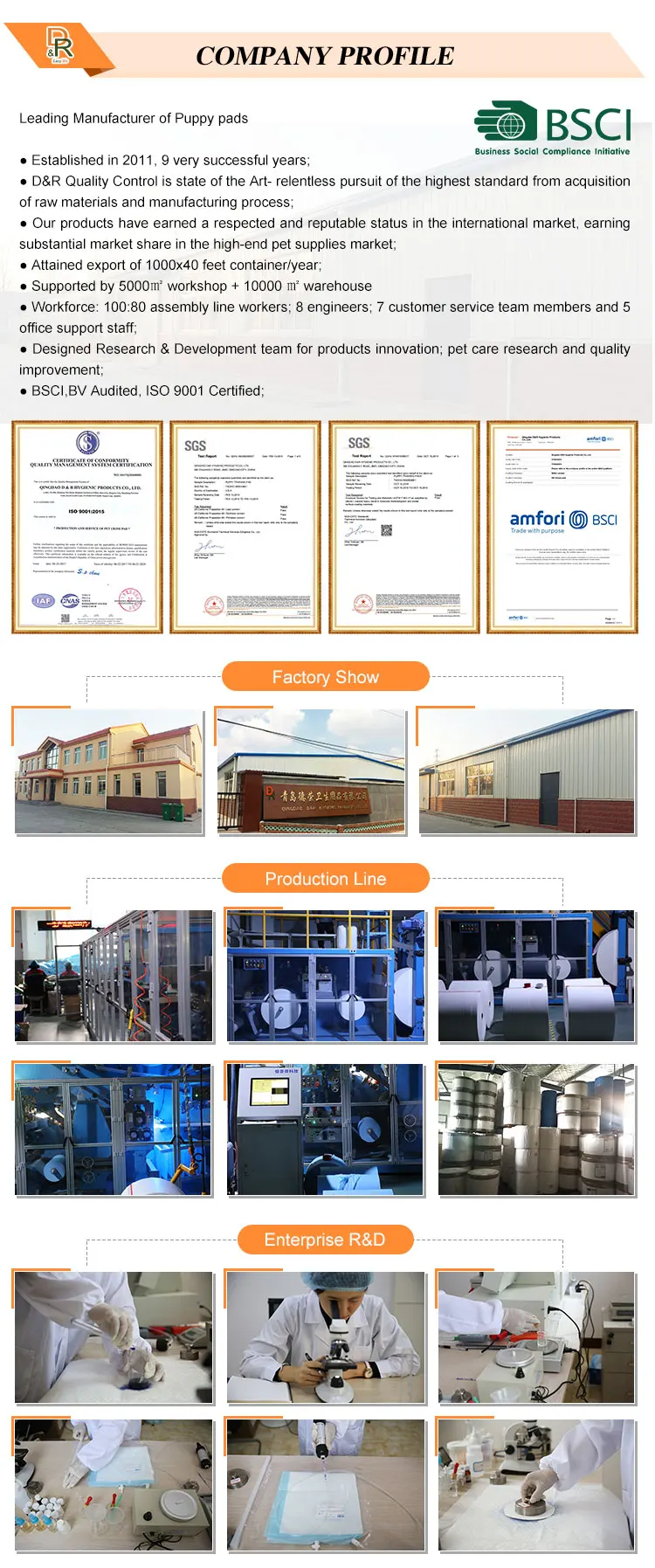 We are professional manufacturer of puppy training pads over 9 years;