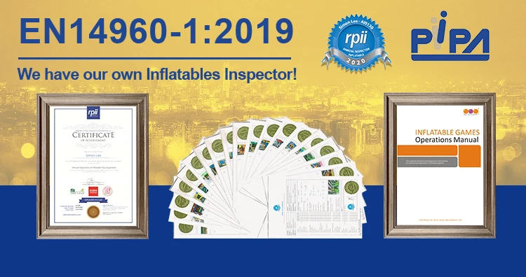 1 | Our General Manager Simon Lee is the only person who are able to issue EN14960 certificate for our inflatables games in Asia so far. |