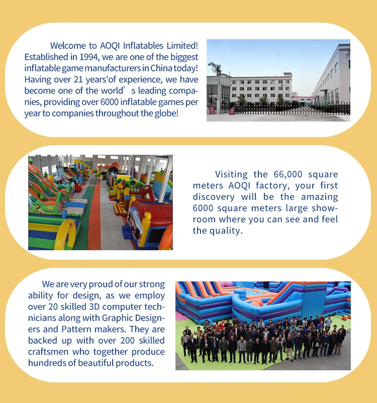 4 | We are providing over 6000 inflatable games(inflatable bouncer inflatable slide,inflatable Water Games and so on )per year to companies throughout the globe! |