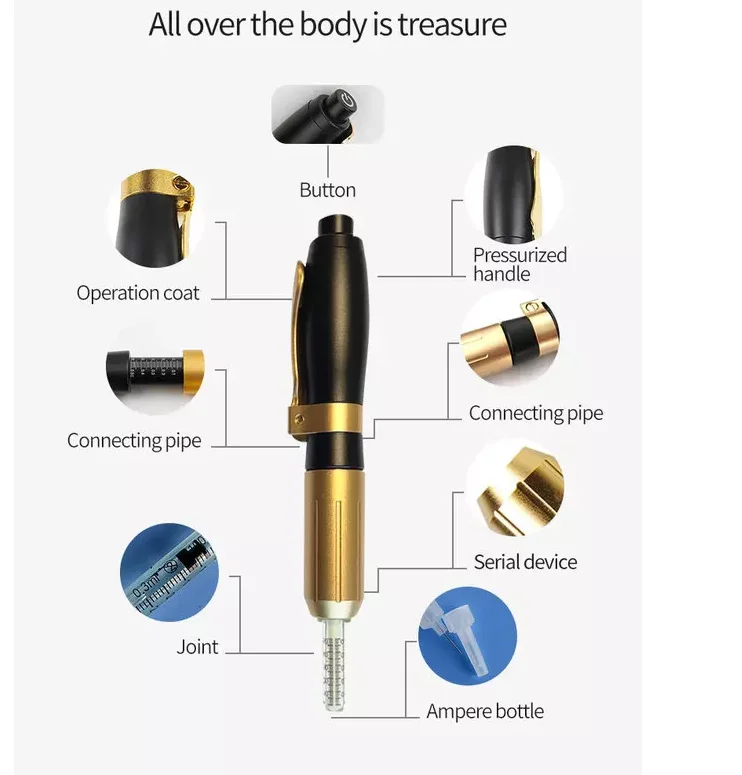 Mainly used to remove wrinkles, bags under the eyes, fat melting, lifting, baby needle. All atomized products can be used, fast absorption. No anesthetic is needed.
