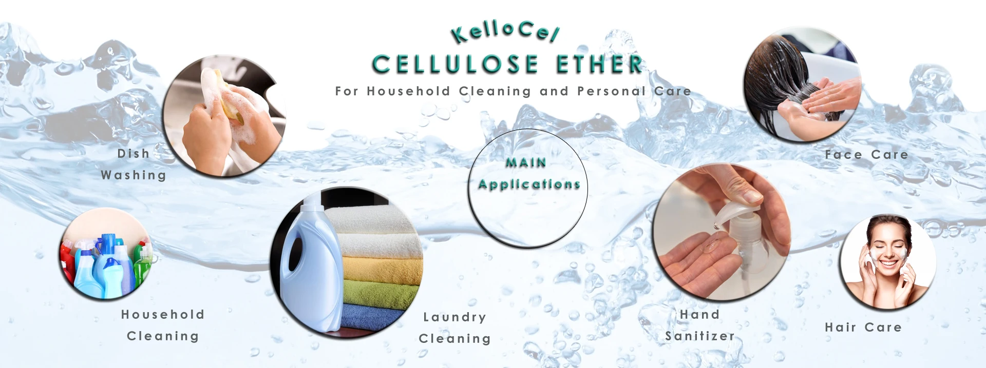 KelloCel™ molecules have emulsifying and protective colloid properties. They act as emulsifiers, rheology modifiers and foam stabilizers in detergent formula, to provide a better touch and visual effect.