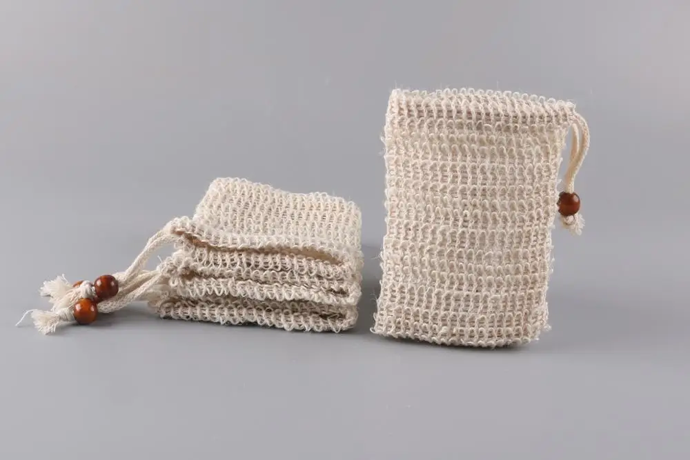 9X14cm Soap Exfoliating Bag Drawstring Natural Sisal Soap Saver Pouch Mesh Soap Bar Bag For Shower |