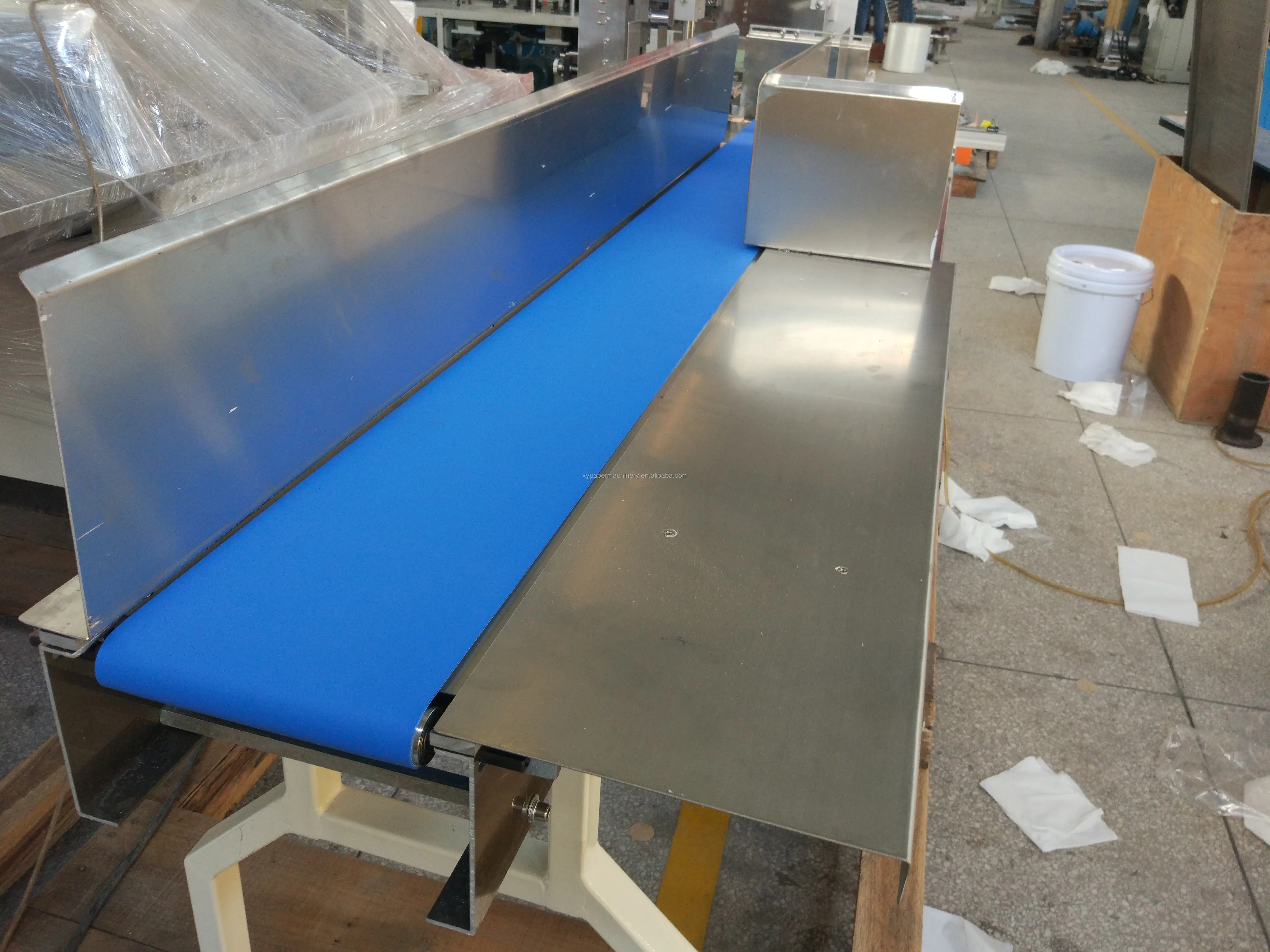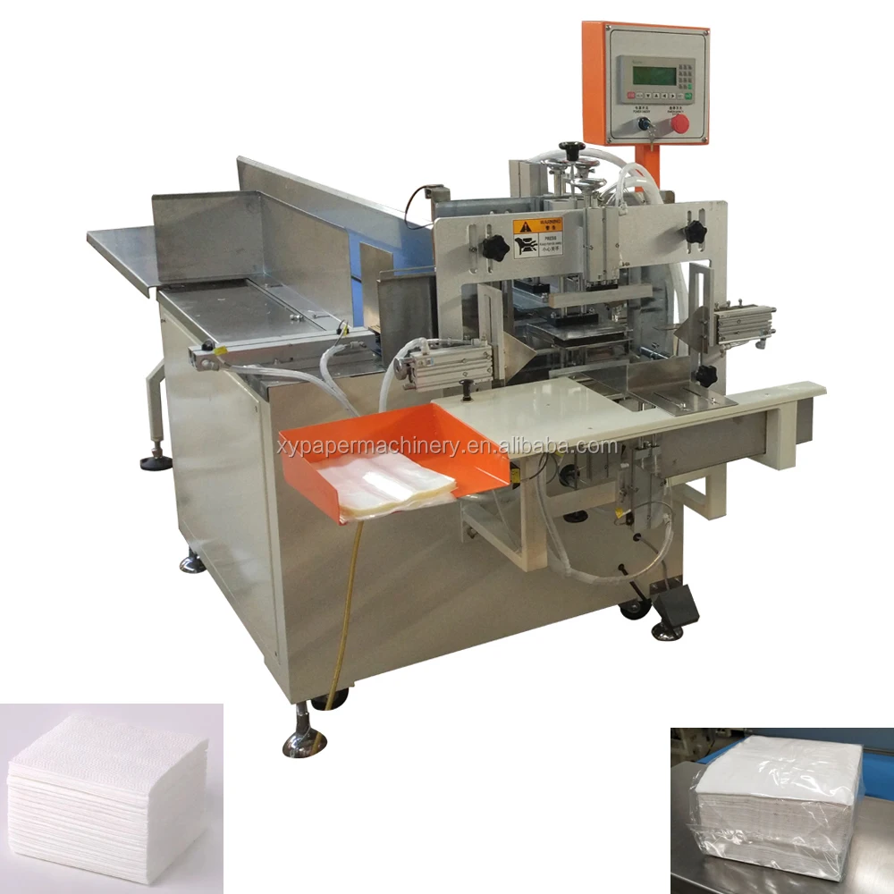 This product is used for packing facial tissue and napkin tissue。Place the paper on the loading part insert the Plastic bag into the discharge hole, product automatic loading into bag, meanwhile, automatic folding bag, and sealed and cut.