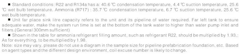 Specification of 495kw Ammonia Evaporative condenser for food industry | ||||||