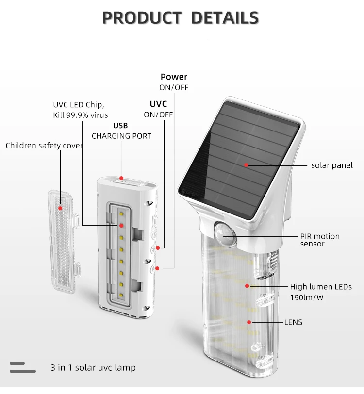 Product Type: | Solar UVC Lamp + Wall Light+Portable Light | |