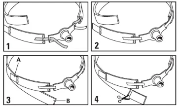 4. Trim excess material (B only) for proper length. Caution Use in supervised care settings only. Monitor to prevent unintentional disengagement. Do not trim fastener hook tabs.
