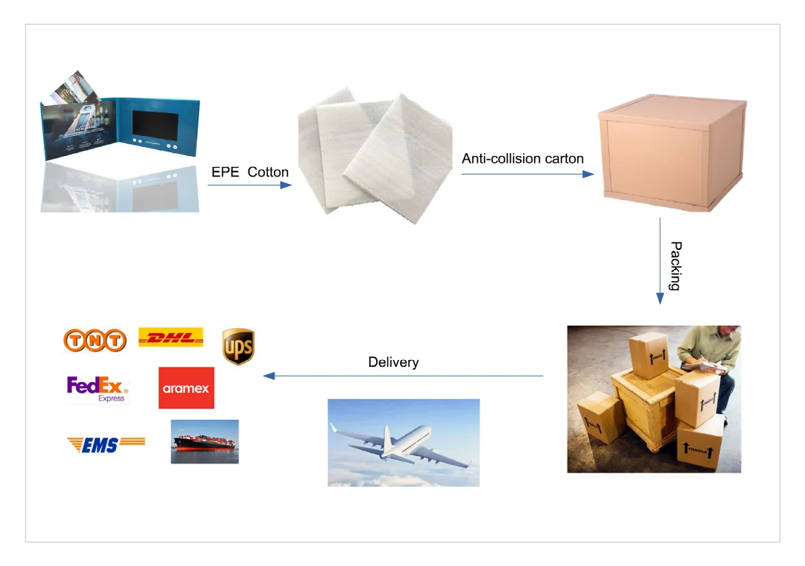 Each Video Brochure has been wrapped with EVA Foam, the durable Carton made with 7 layers for shipping.