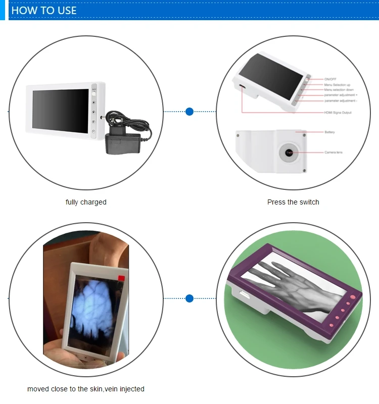 1)HD of venous imaging technology,use 1.3 million pixels camera, industrial grade camera and display provide best imaging,can
