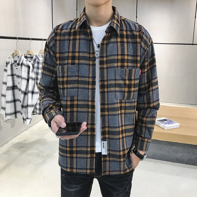 Wholesale Fashion Checked Plaid Shirts Cotton Loose Plaid Shirts Men