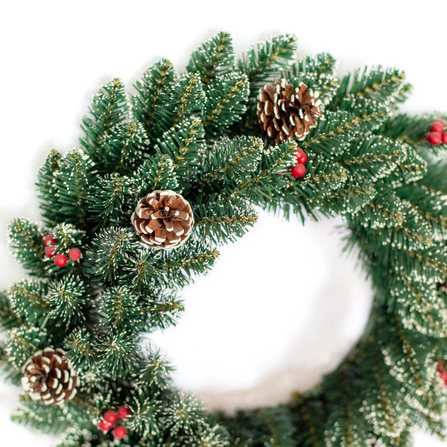 Product name | 2019 new PVC christmas deco mesh Wreath with red fruits Pine cone | ||||||
