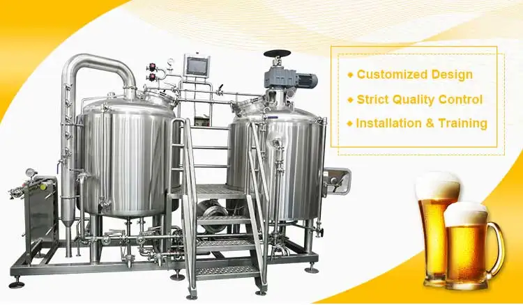 1.Mash Tun /Lauter Tank, Brew Kettle/Whirlpool Tank (2 Vessel) 2.Mash Tun, Lauter Tank, Brew Kettle/Whirlpool Tank(3 Vessel) 3.Mash Tun/ Lauter Tank, Brew Kettle,Whirlpool Tank(3 Vessel) 4.Mash Tun, Lauter Tank, Brew Kettle, Whirlpool Tank(4 Vessel) 5.Hot Water Tank, Heat Exchanger, Hop Back Tank, Wort Oxygenator(option) | |