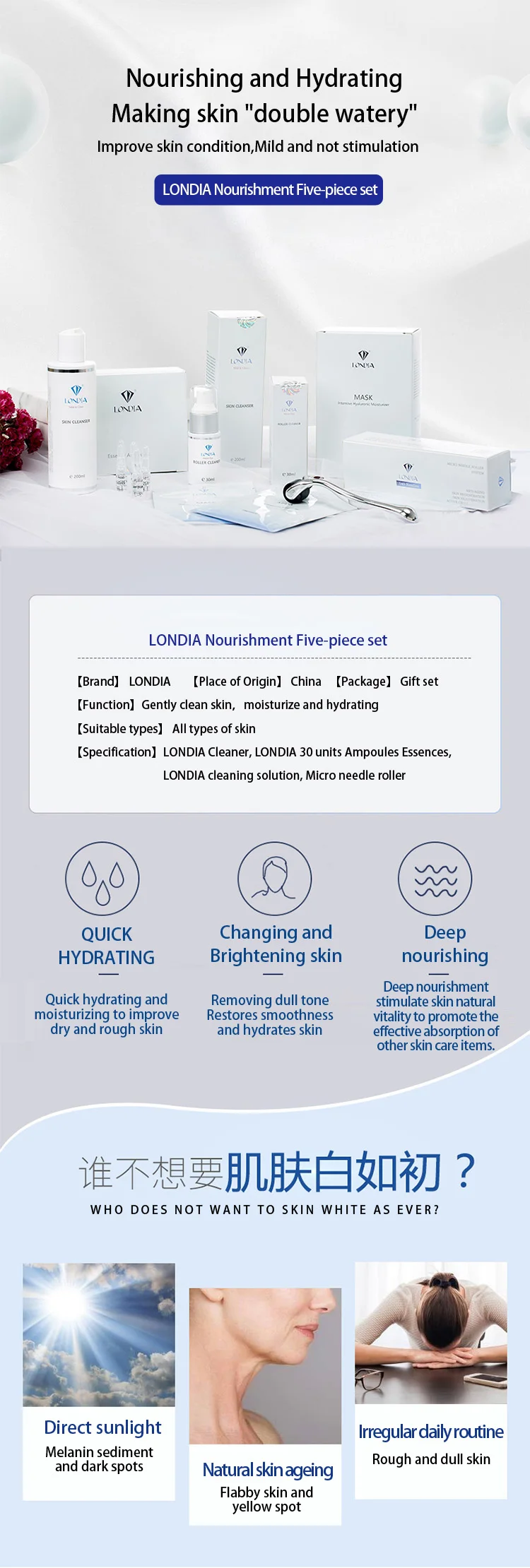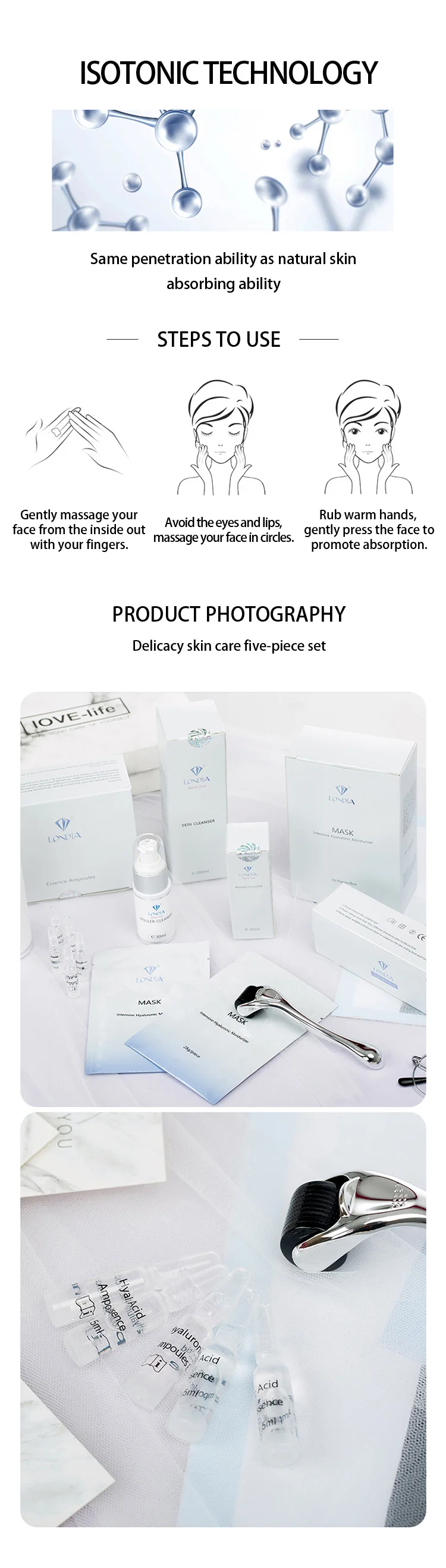Kit includes | Facial cleanser,Needle roller,Moisturizing facial mask,Ampoule essence,clean water |