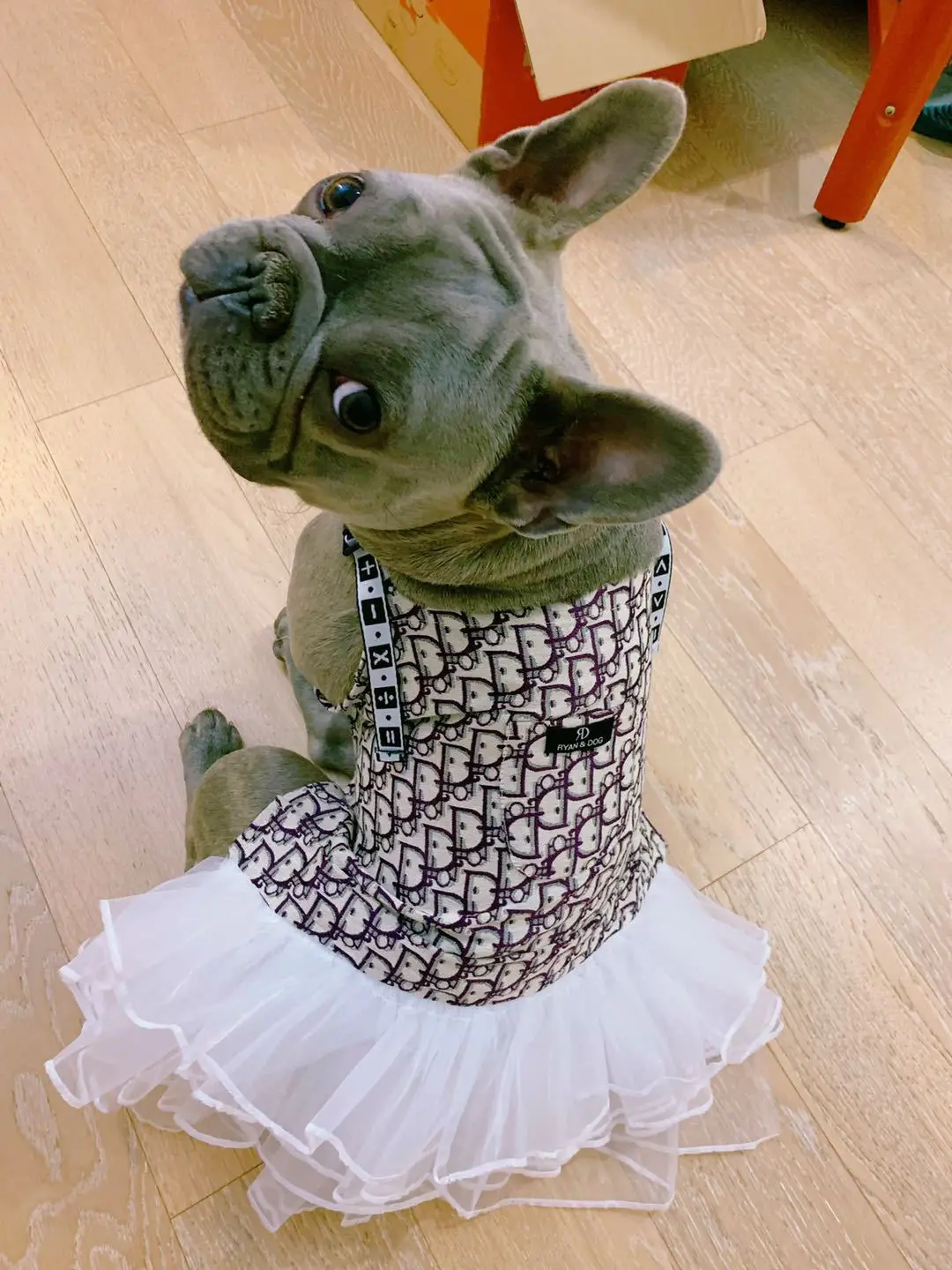 JXANRY Spring and Summer new Teddy Dress French Bulldog Clothes Fat dog Popular Logo Jean Strap Skirt Stretchy Comfortable Pet