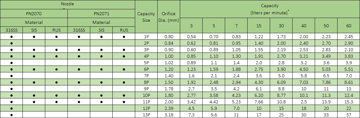 Spray flow rate under the condition of same medium is roughly proportional to the square root of the spray pressure increase or decrease any nozzle under a certain pressure flow can be calculated at any pressure of traffic and set a known spray flow for Q1, corresponding pressure for F1, known pressure of F2, unknown flow Qx, its relationship to the table lists the spray coverage in the shape of a theory is based on the spray Angle and jet distance and calculated. These values are the assumption that the spray Angle of the base dry spray remains constant throughout the spray distance. In practical application, the spray Angle included in the table does not apply to spray distance. The spray Angle included in the table shows an approximate spray cap range based on water. In actual spray, the effective spray Angle is due to the spray distance surface meter, if the required spray coverage is critical, the specific spray coverage data. When the liquid is more viscous than water, the spray Angle is relatively small (or even small)