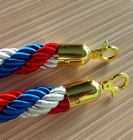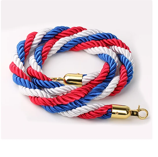 Braided stanchion rope with gold ends are a refreshing upgrade from classic velour or velvet. The main objective of braided stanchion rope is to maintain crowd control just like any other, but that is just boring. Braided stanchion rope makes queue management much more interesting as it gets you thinkning about the decorative aspect. If you are buying golden or brass stanchions, you don't have to settle for classic velvet cords. Braided stanchion ropes are actually closer to rope than any other "rope." The intertwined strands of colorful fibers create a rustic, yet appealing, look for your venue or place of business. Braided stanchion cords also prove to be miore durable than classic sand-filled or foam-filled ropes since they are tightly braided.