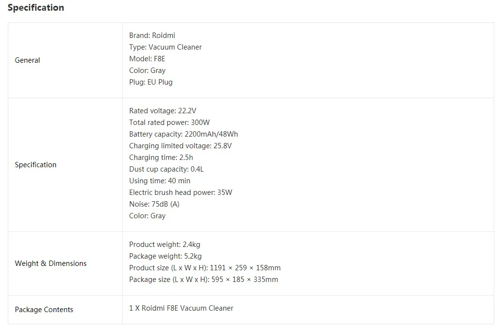 Packing : Original Roidmi Box with "Roidmi" Logo.