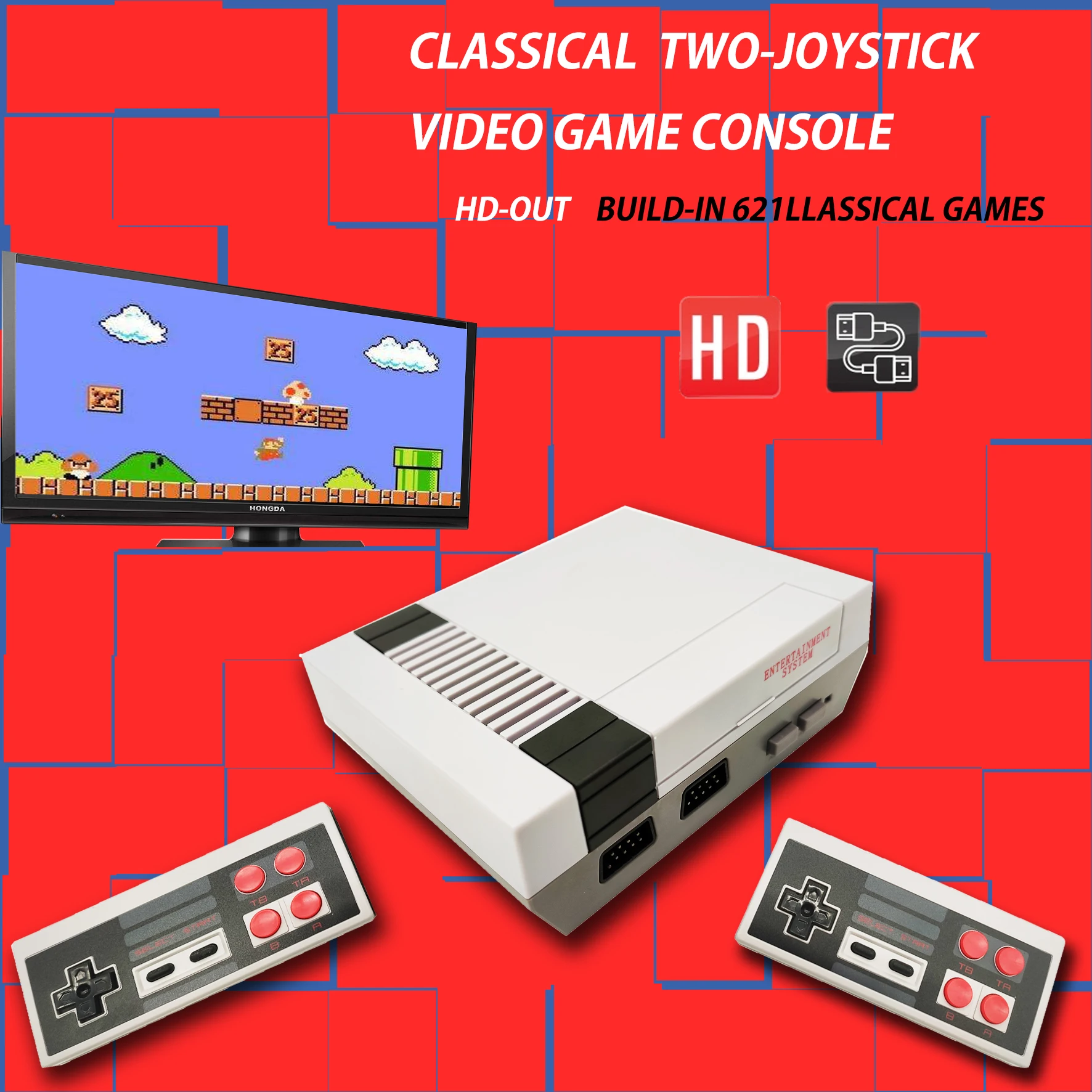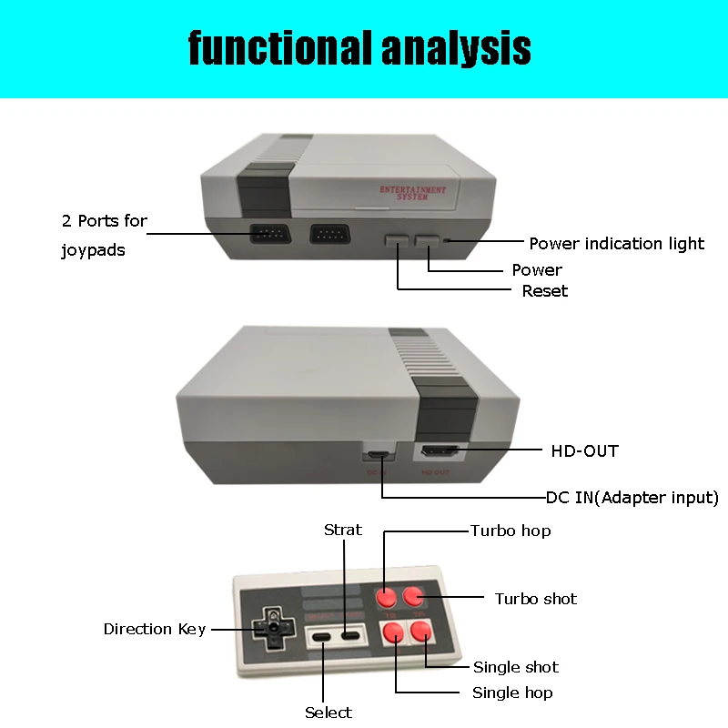(1) rich game content Hundreds of games are built into the game console, including contra, ninja turtles and other popular classic games, rich content allows users to choose more, more fun! (2) the game picture is clearer The product USES the hd HDMI cable output, the picture is more exquisite, no longer need to let oneself adapt to the traditional AV cable output that kind of fuzzy picture quality. (3) better handle The shape of the gamepad takes into account the habits of players. The shape of the gamepad is optimized on the buttons to make the gamepad easier to hold and the buttons more sensitive. (4) talk about childhood Busy work makes you lose a lot of opportunities to communicate with children, this game console can let you find an entry point to communicate with children from the game, easier and more natural into children's life