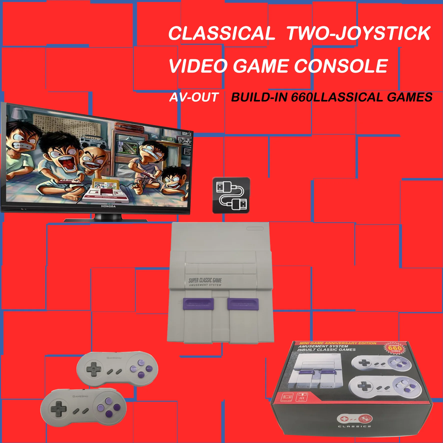(1) rich game content Hundreds of games are built into the game console, including contra, ninja turtles and other popular classic games, rich content allows users to choose more, more fun! (2) better handle The shape of the gamepad takes into account the habits of players. The shape of the gamepad is optimized on the buttons to make the gamepad easier to hold and the buttons more sensitive. (3) talk about childhood Busy work makes you lose a lot of opportunities to communicate with children, this game console can let you find an entry point to communicate with children from the game, easier and more natural into children's life