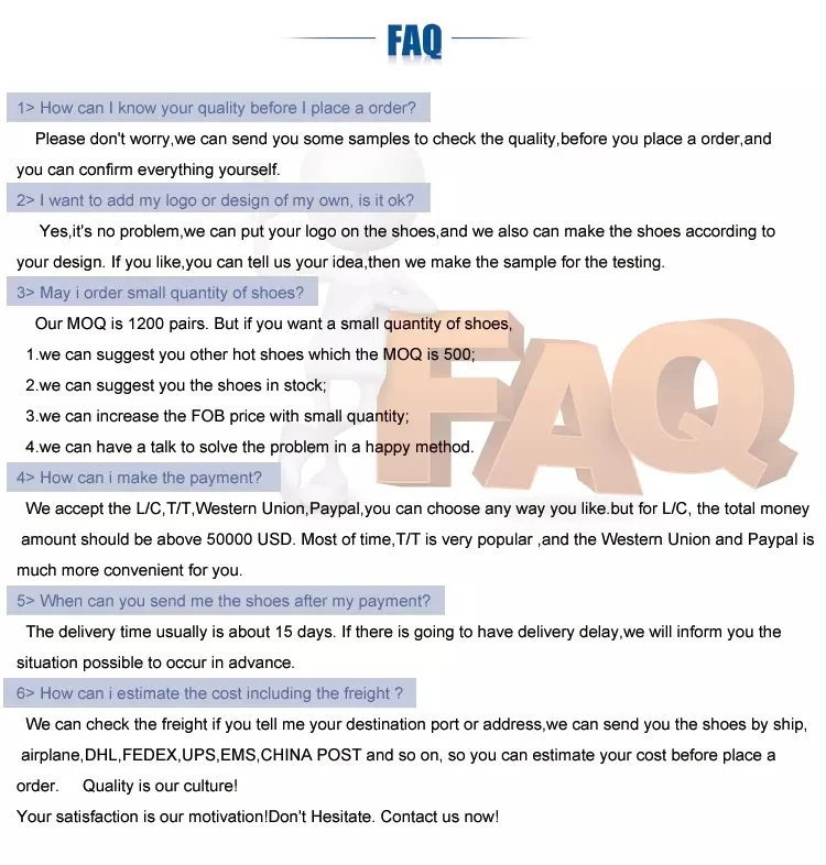 Advantages a. Focus on producing all kinds of cloth shoes for many years; b. Supply various models and according to the design of each customer; c. Factory directly sales and process; d. Precise target for each department to done a good job; e. Right price, right quality and right service to each customer; f. Pay 100% attention on every customer no matter big or small, grow together with you.Advantages