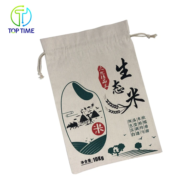 Customized Canvas Cotton Drawstring Bags For Flour Soybean Rice