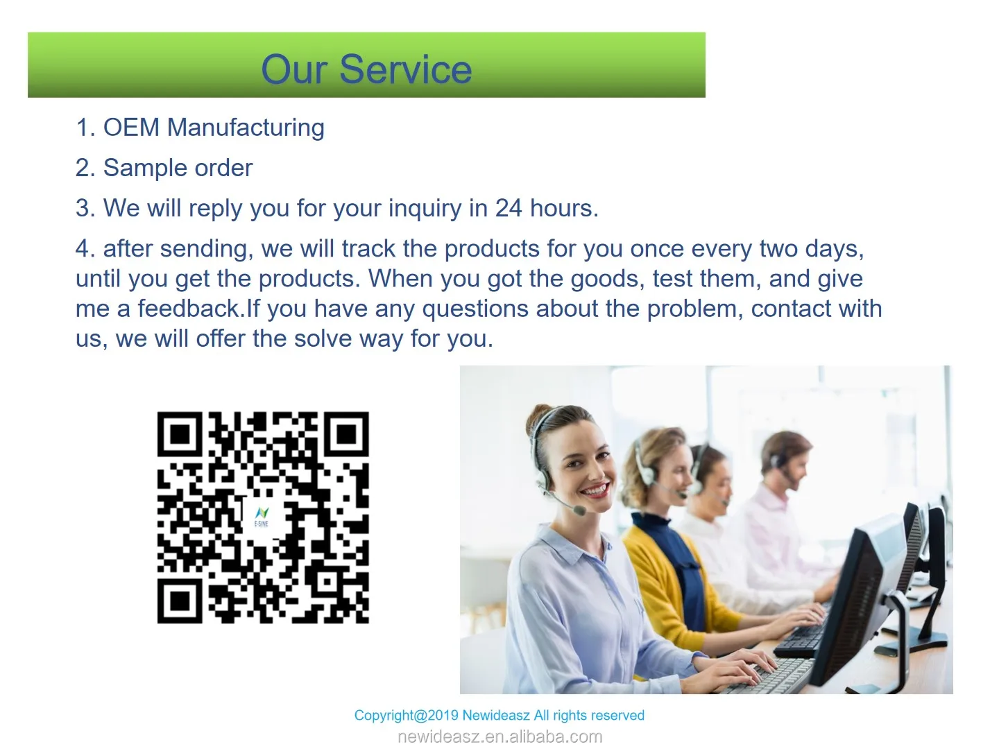 Pre-Sales Service * Inquiry and consulting support. * View our Factory.