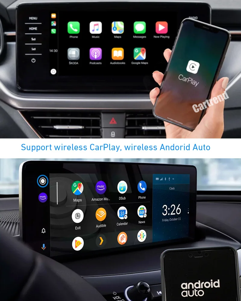* Support wireless CarPlay and wireless Android Auto. * Support wired CarPlay and wired Android Auto. * Work with original car knob control. * Work with original car Bluetooth. * Automatically connect to the CarPlay system. * Built-in audio processing chip to improve sound quality. * Support original / aftermarket Reverse/Front/360 camera. * Comes with HDMI input for external media. * Jack by jack cable connection without cutting cable, plug and play by easy settings.