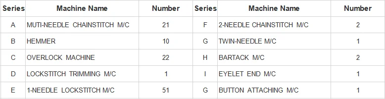 Equipment list