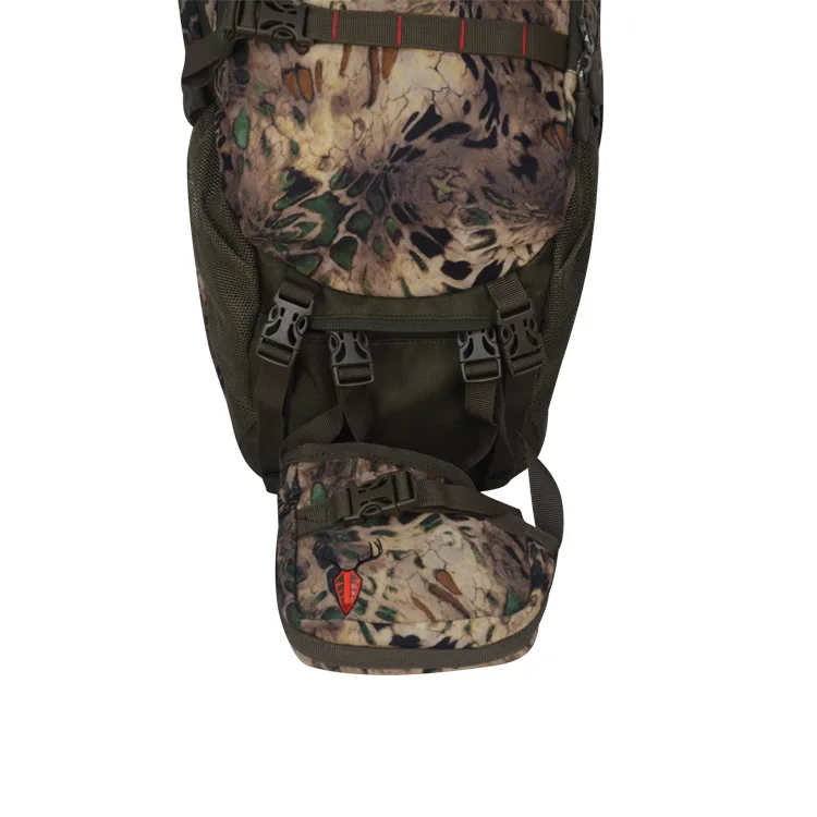 Feature Description | - 2 Large zipper side pockets.- Durable TPU LAMINATED BRUSH TRICOT, Water Resistant- 2 mesh side pockets- Drop-down Gun Holder- Water Resistant Rain-Fly- Several pockets inside.- Airflow Back pad- Hydration system- Extension Straps on sides and bottom- Light weight frame supporting system- Close cell foam padded shoulder strap system with extension system- Close cell foam padded Waist belts with accessories pockets- 1 large zipper front pocket- 1 horizontal zipper front pocket on outer- 1 horizontal zipper front pocket on outer- 1 large main compartment | |